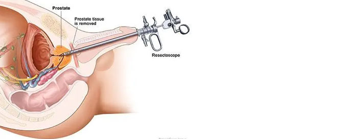 During TURP, the surgeon inserts a resectoscope (a thin tube with a light and camera) through the urethra — the natural urinary passage — without any external incision. The excess prostate tissue causing the blockage is carefully removed using an electrical loop or laser, allowing urine to flow freely again.